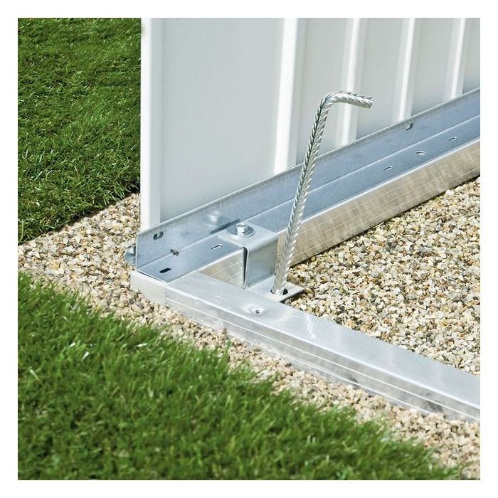 Der Alu-Bodenrahmen gibt auf unebenen Untergrund die notwendige Stabilität, falls Sie kein Betonfundament errichten wollen. Der Bausatz besteht aus Aluminium-Profilrohren (40 x 40 mm) mit Eckverbindungen und Befestigungsmaterial (Bodenanker sowie Schrauben).