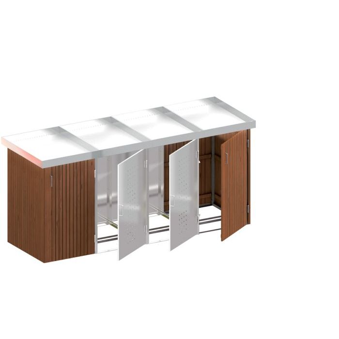 Binto Mülltonnenbox 4er-Kombi mit Hartholz- und Edelstahl-Verkleidung und Pflanzschalen (5121)
