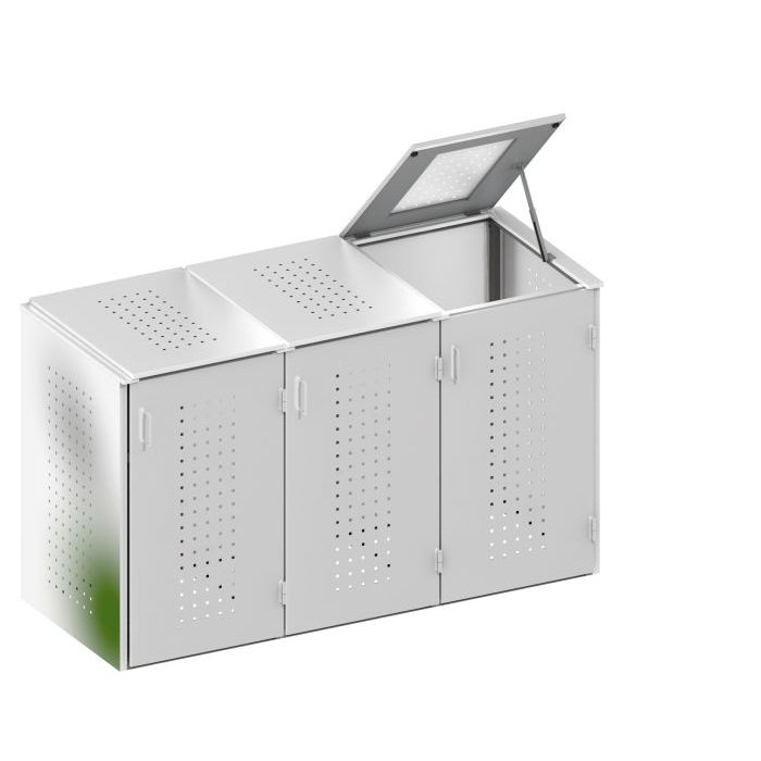 Binto Mülltonnenbox Edelstahl 3er-Box mit Klappdeckeln