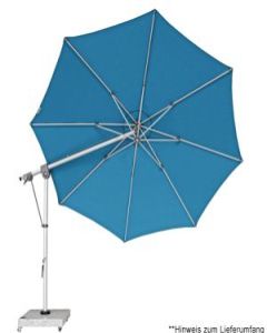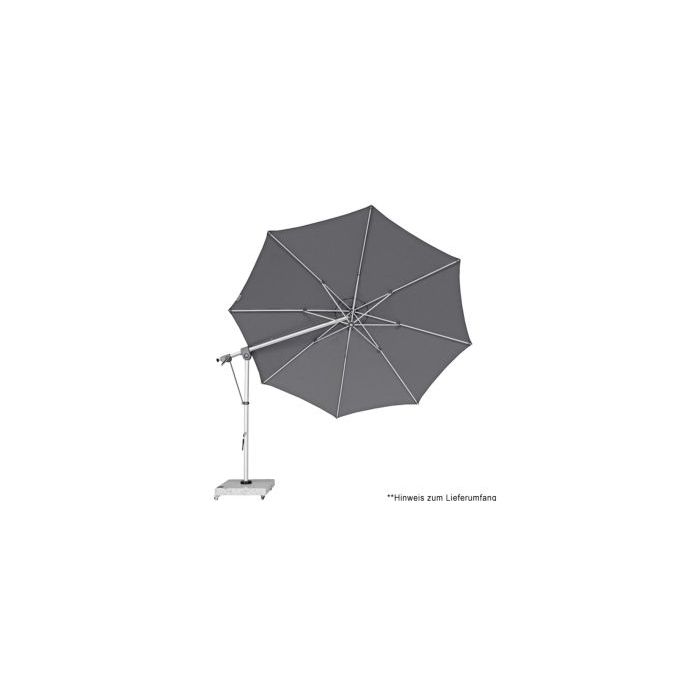 Dieser multifunktionale Pendelschirm passt sich durch seine Möglichkeit sich um 360 Grad zu drehen und axial beidseitig zu verstellen optimal dem Sonnenstand an. Mit nur einem Handgriff kann der Schirm in wenigen Sekunden geschlossen werden. Völlig neu und einzigartig ist der neu entwickelte "Zahnriemenantrieb". Dieser gewährleistet langlebigen und störungsfreien Betrieb beim Öffnen und Schließen des Schirms.