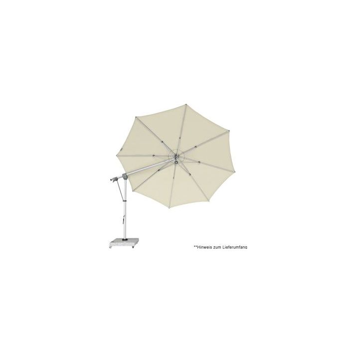 Dieser multifunktionale Pendelschirm passt sich durch seine Möglichkeit sich um 360 Grad zu drehen und axial beidseitig zu verstellen optimal dem Sonnenstand an. Mit nur einem Handgriff kann der Schirm in wenigen Sekunden geschlossen werden. Völlig neu und einzigartig ist der neu entwickelte "Zahnriemenantrieb". Dieser gewährleistet langlebigen und störungsfreien Betrieb beim Öffnen und Schließen des Schirms.