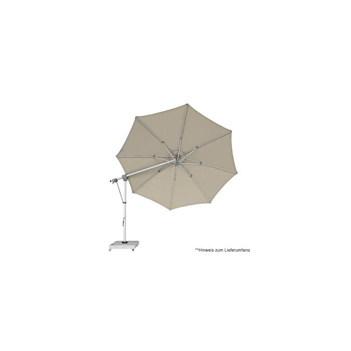 Dieser multifunktionale Pendelschirm passt sich durch seine Möglichkeit sich um 360 Grad zu drehen und axial beidseitig zu verstellen optimal dem Sonnenstand an. Mit nur einem Handgriff kann der Schirm in wenigen Sekunden geschlossen werden. Völlig neu und einzigartig ist der neu entwickelte "Zahnriemenantrieb". Dieser gewährleistet langlebigen und störungsfreien Betrieb beim Öffnen und Schließen des Schirms.