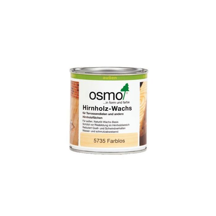 Osmo Hirnholz-Wachs eignet sich besonders für Hirnholzenden von Terrassendielen, Fassaden oder Dachüberständen aus Hart- und Weichhölzern, wie Bangkirai, Teak, Massaranduba, Garapa, Cumaru, sowie Kiefer, Fichte, Douglasie, Lärche, Zeder, Thermoholz etc.