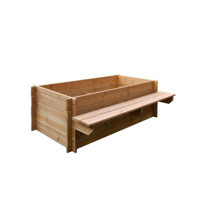 Der neueste Garten-Trend: Hochbeete für maximalen Ertrag auf kleinem Raum. Gartenarbeit ohne Rückenschmerzen. 28 mm starke Wandbretter aus unbehandeltem Douglasienholz. Ohne chemische Behandlung für biologisches Gärtnern. Der Bausatz besteht aus 28 x 145 mm profilierten Douglasie-Dielen, welche im Steck-System befestigt werden. Die Sitzbretter sind glatt gehobelt, Sitzfläche ca. 200 x 56 cm. Das Hochbeet wird mit spezieller Noppenfolie zum Auskleiden geliefert. Die Noppen sorgen für eine Hinterlüftung des Holzes. Damit haben Sie länger Freude an Ihrem Hochbeet.
