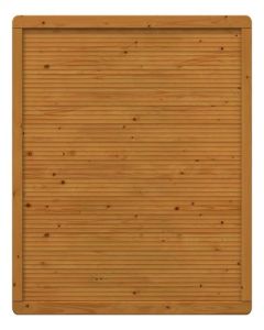 Die lasierten 20 mm starken Profilbretter eingefasst im massiven Rahmen sind aus technisch getrocknetem Nadelholz gefertigt. Die einzelnen Profilbretter gehen unsichtbar, scheinbar endlos, ineinander über.