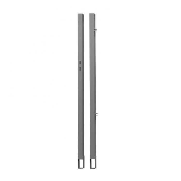 Die Hohlkammerpfosten bestehen aus feuerverzinkten Metall und haben im Vergleich zu den einfachen Pfosten ein deutlich stärkeres Wandmaß. Die Torpfosten haben eine angeschweißte Toraufhängung sowie zwei Kunststoffabdeckkappen. Um die Torpfosten vor Verwitterung zu schützen, wurden sie verzinkt und anschließend silberfarben pulverbeschichtet.